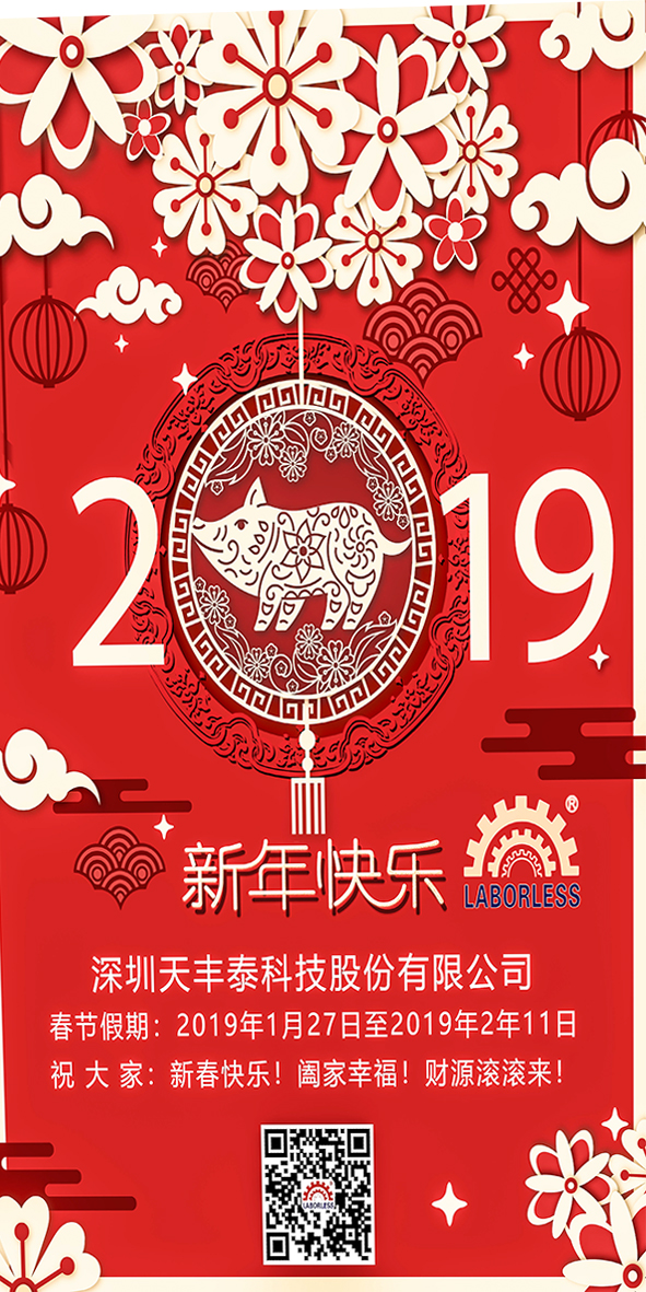 點膠機廠家深圳天豐泰科技股份有限公司2019年1月27日 公司全體放假,即春節(jié)放假16天,?2019年2月12日(初八)正式上班。